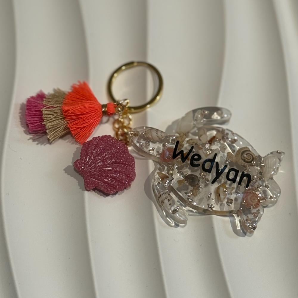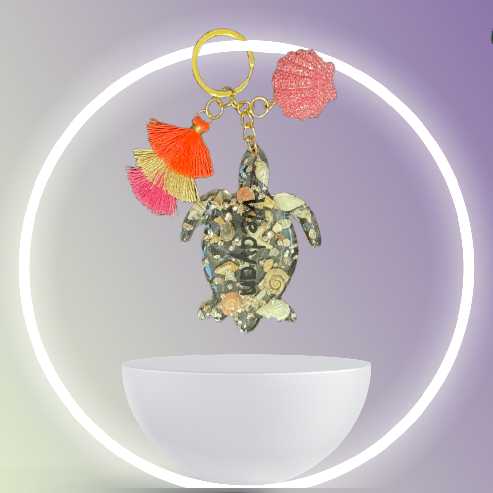 ميدالية مفاتيح على شكل سلحفاة شفافه بالصدف مصنوعة يدويًا من مادة الريزن
