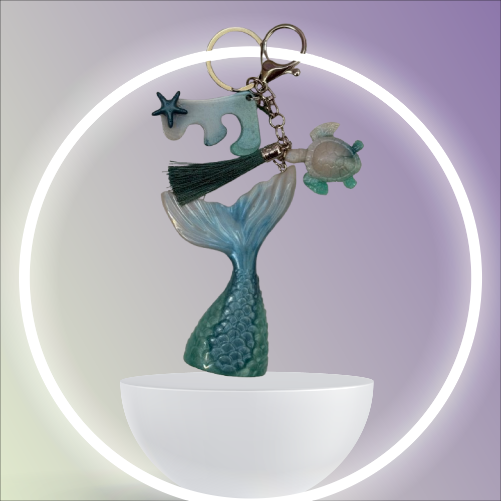 تعليقة شنطة أنيقة مصنوعة يدويًا من الريزن تحتوي على ذيل حورية البحر لإضافة لمسة فريدة ومبهجة لحقائبك أو كميدالية مفاتيح.